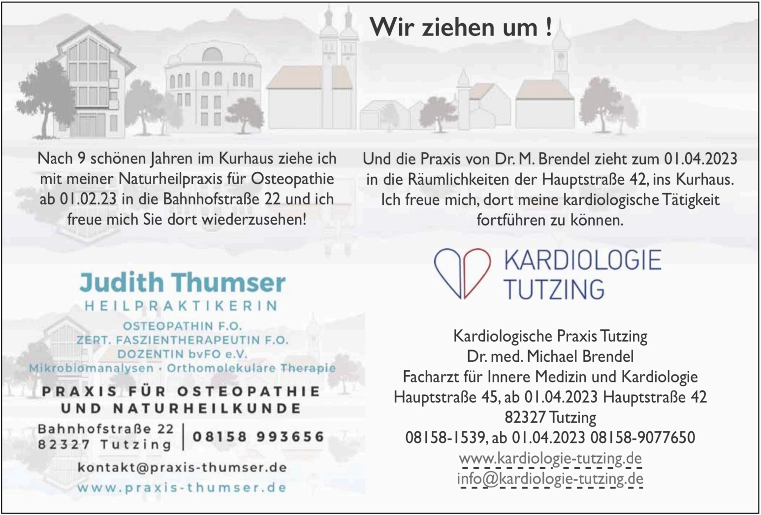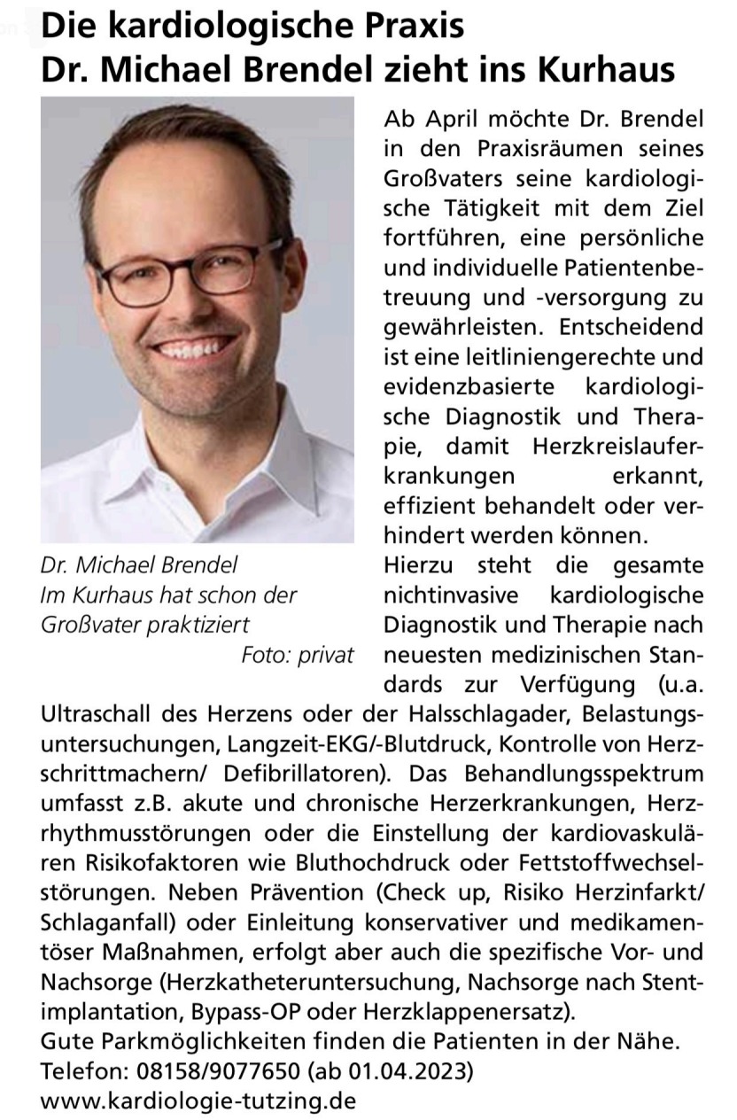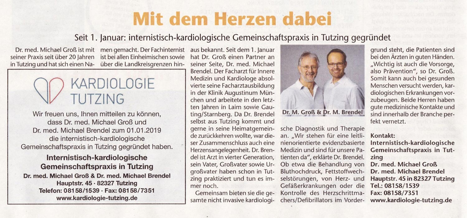 Artikel aus den Tutzinger Nachrichten bei Umzug der kardiologischen Praxis Dr. Michael Brendel in die Hauptstraße 42